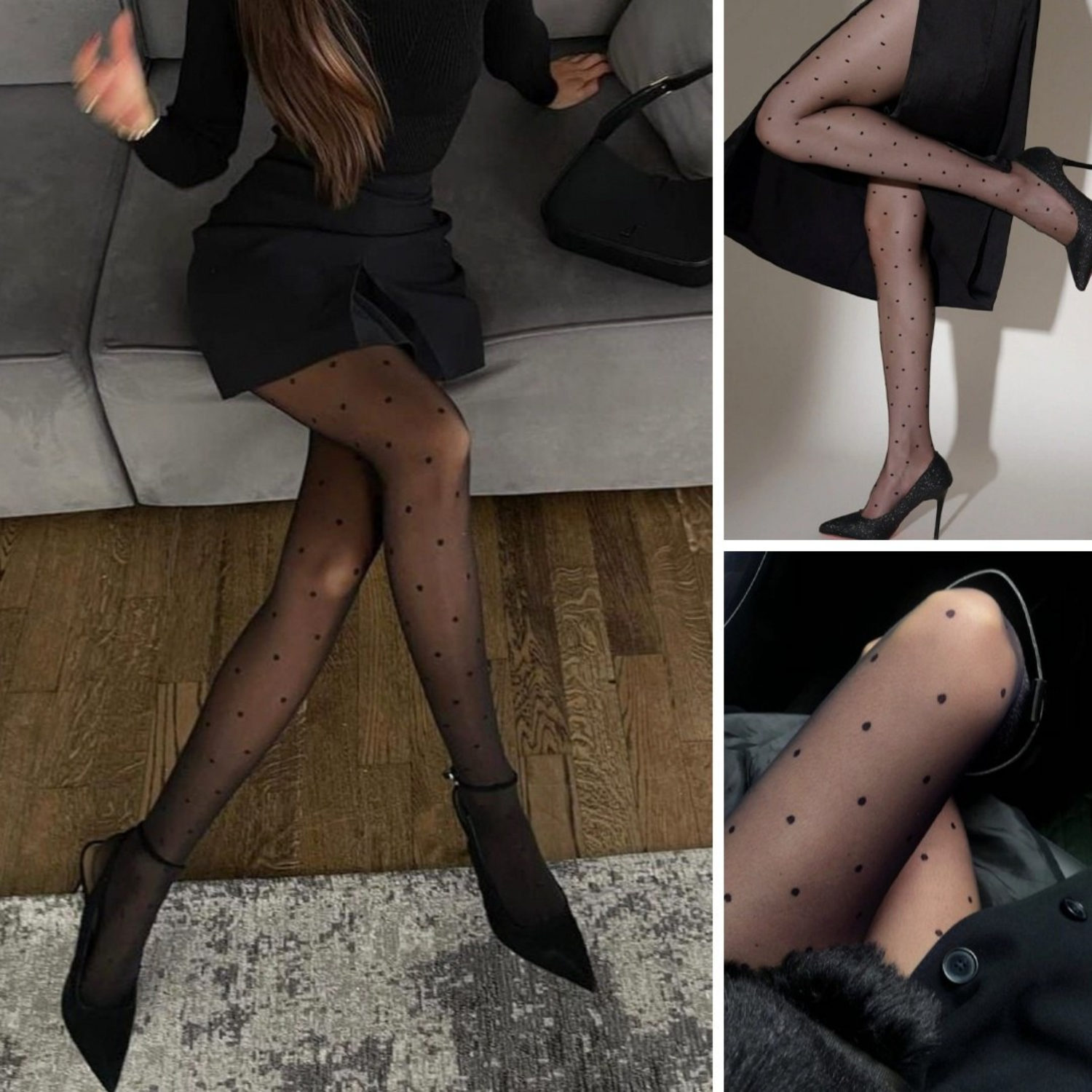 Bas-culotte noir à pois, élégant et confortable. Motif rétro-chic, matière fine et extensible pour un ajustement parfait. Un indispensable pour sublimer vos jambes avec raffinement. 🖤