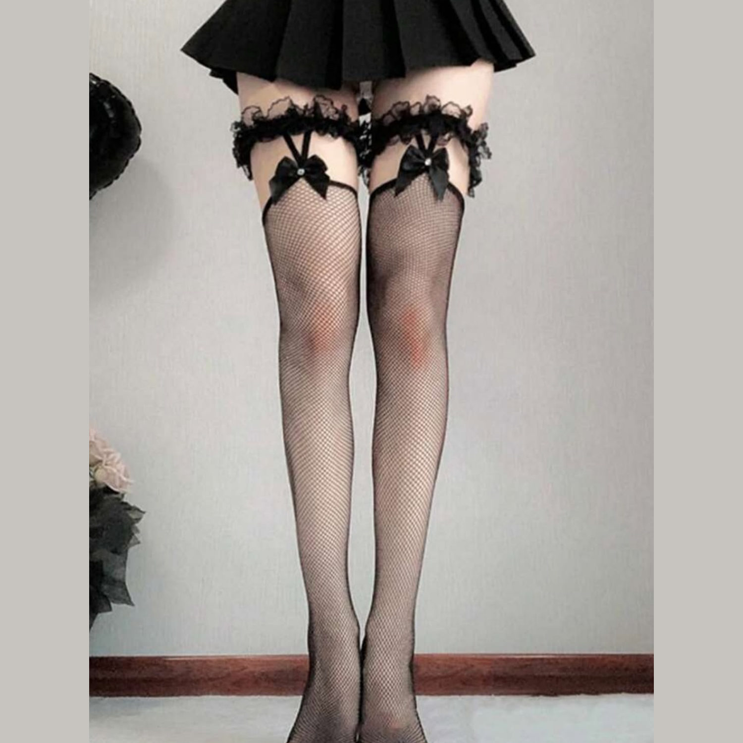 Sublimez votre allure avec ce bas jarretelles en résille noir.