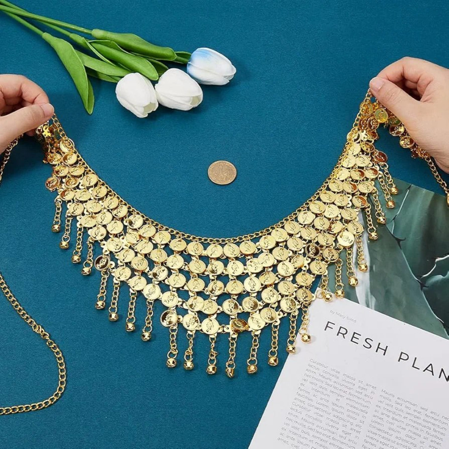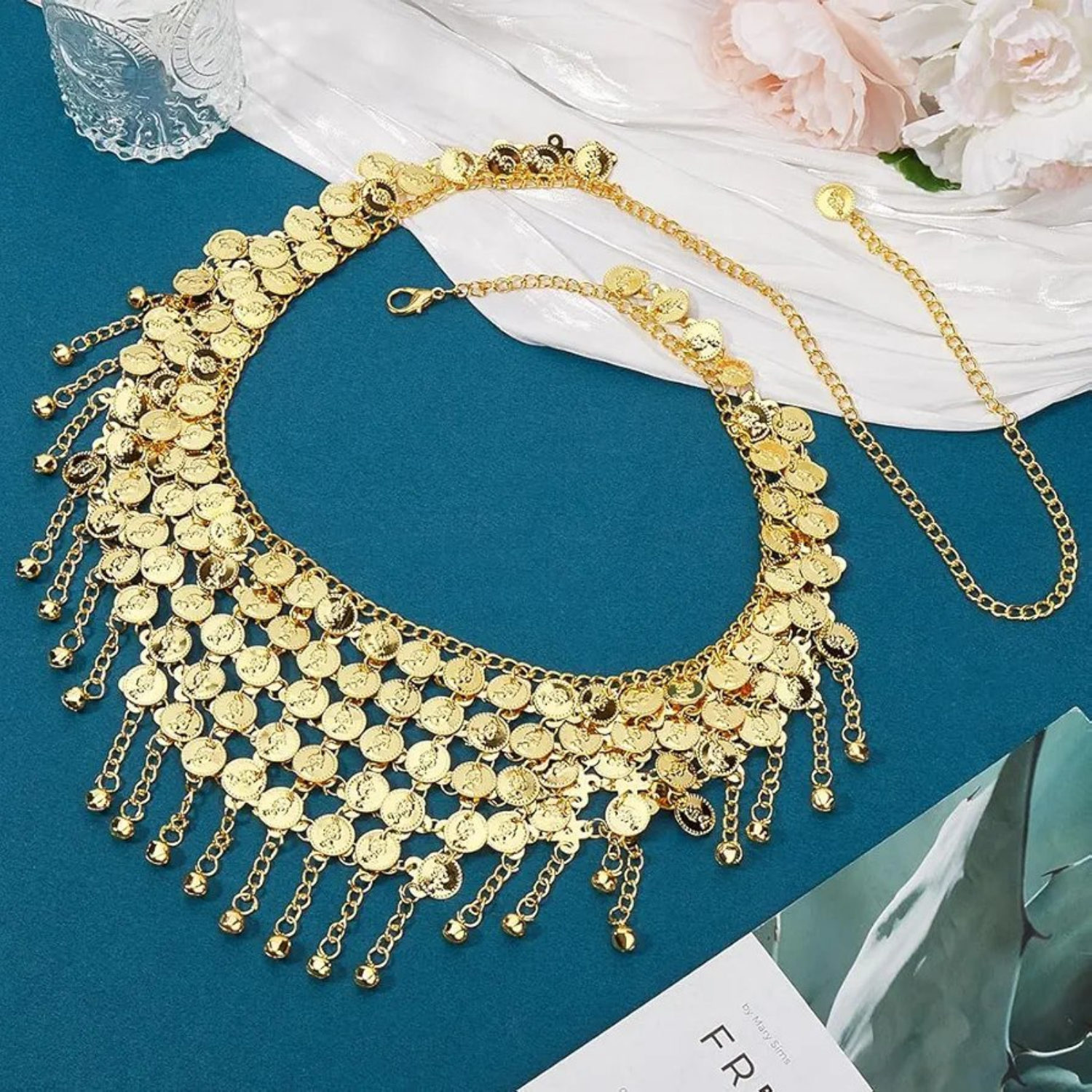 Sublimez vos mouvements avec cette ceinture de danse en acier inoxydable couleur or.