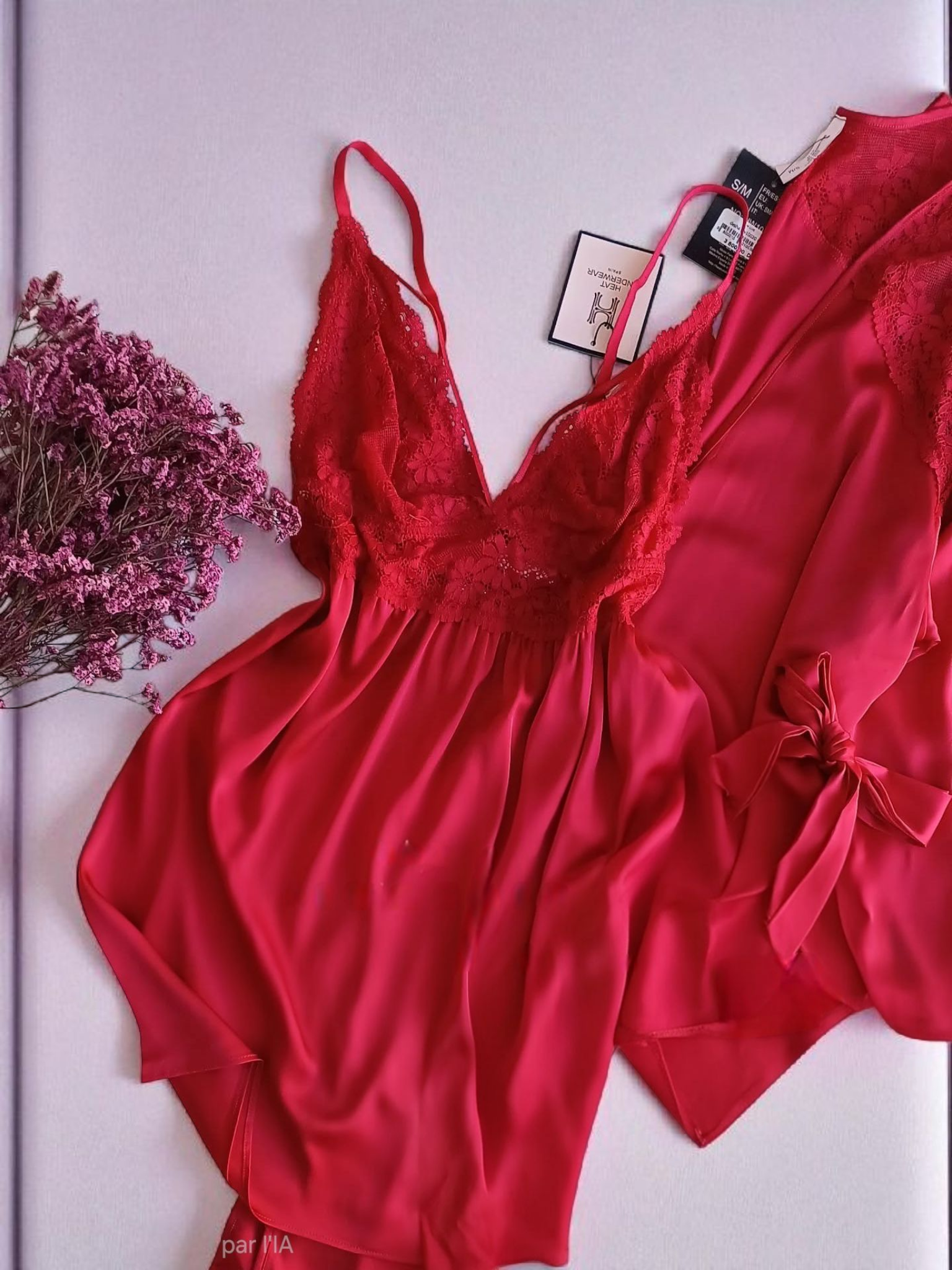 Élégant et féminin, ce déshabillé en satin et dentelle signé Heat Underwear Spain offre un parfait équilibre entre confort et sensualité 💋