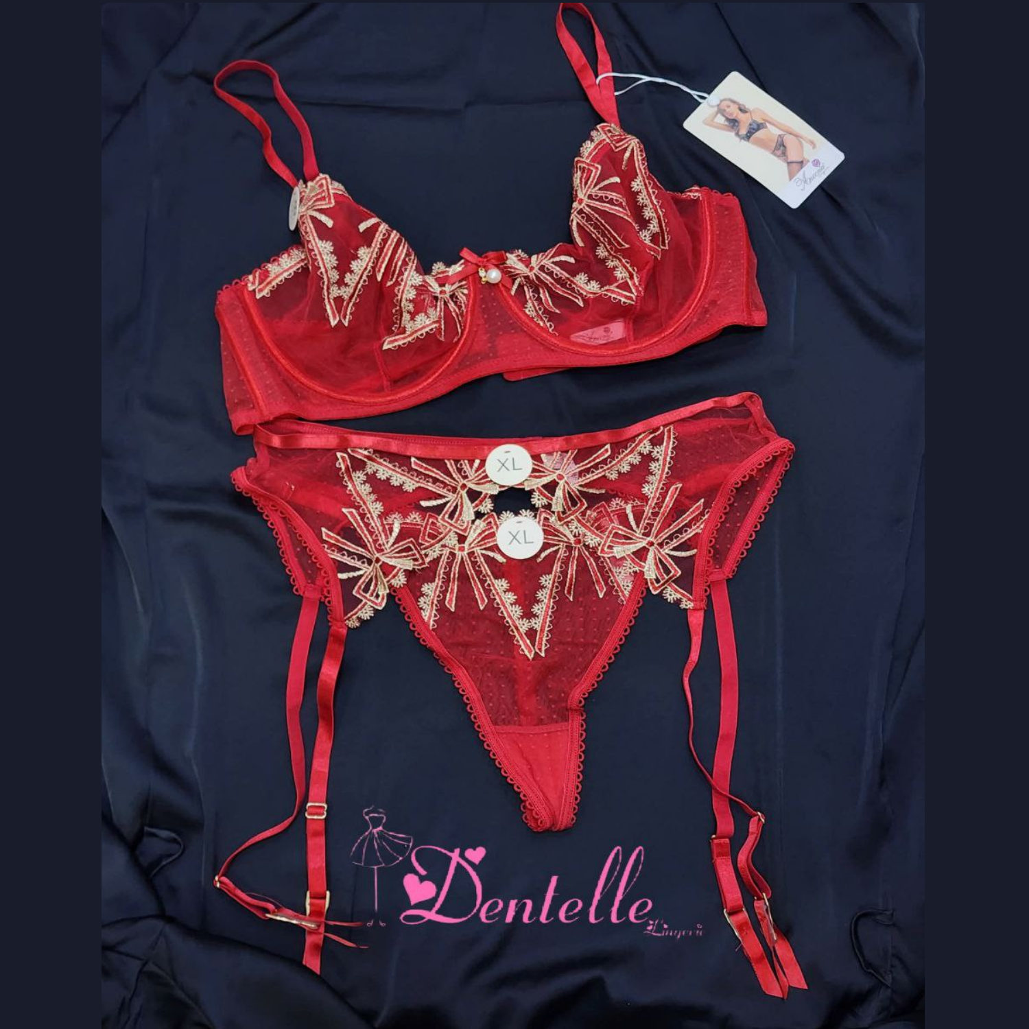 🔹 Composition : Soutien-gorge + porte-jarretelles + string