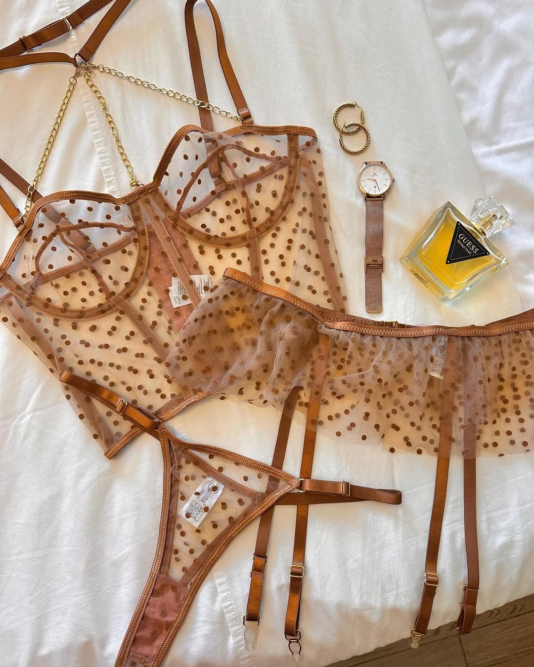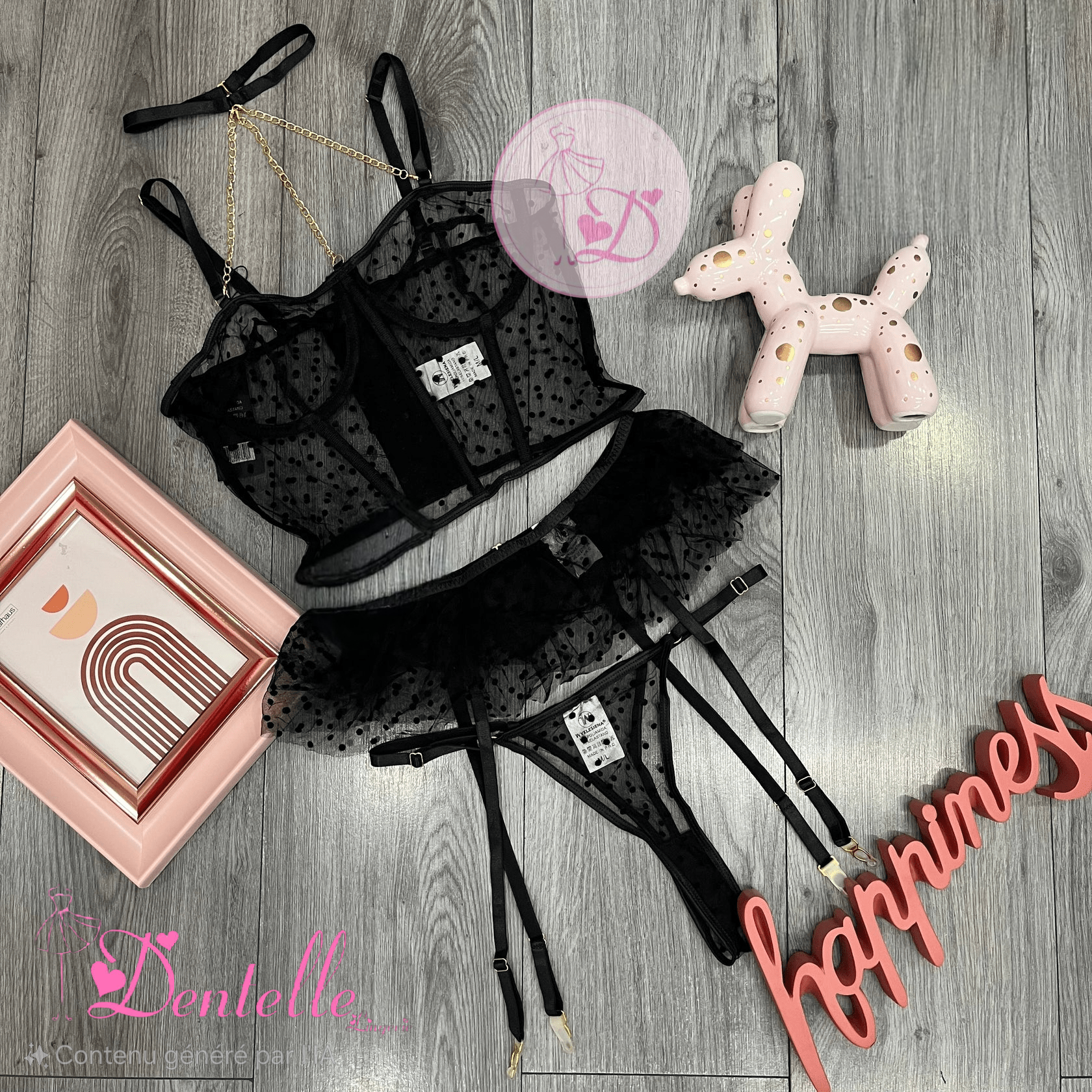 ✨ Ensemble 3 pièces porte-jarretelles en tulle – sensualité et finesse