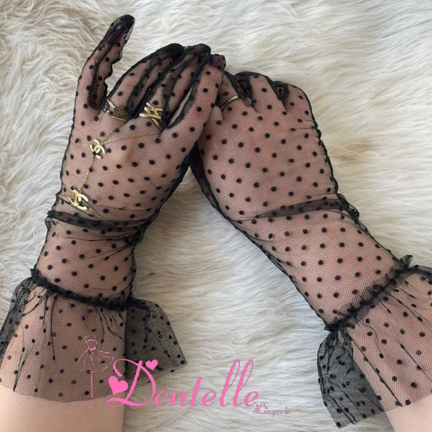 🖤🤍 Gants en Tulle à Pois – Taille Standard