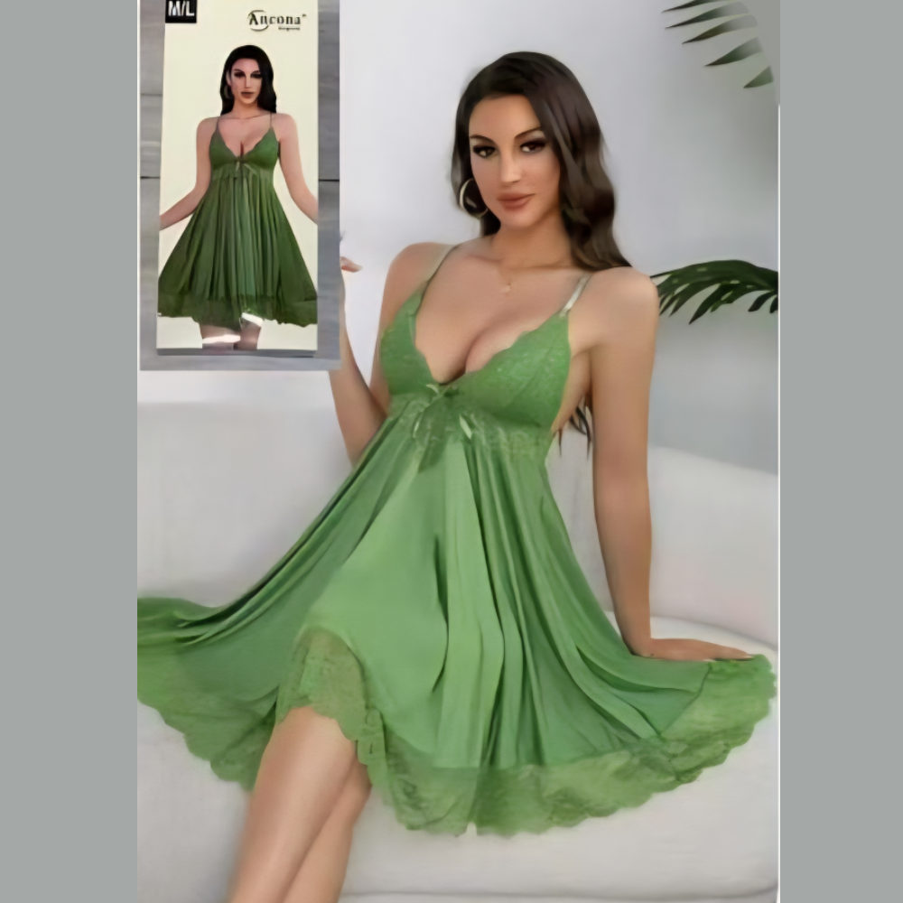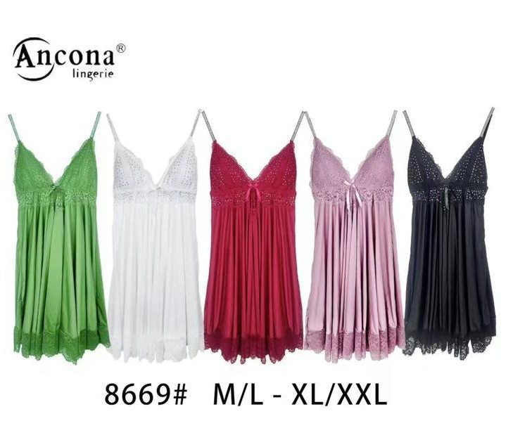 Succombez à l’élégance avec cette nuisette satinée signée Ancona Italie, ornée de détails en dentelle raffinée et perles délicates sur la poitrine et les bretelles. Un modèle sensuel et chic qui allie confort et séduction.