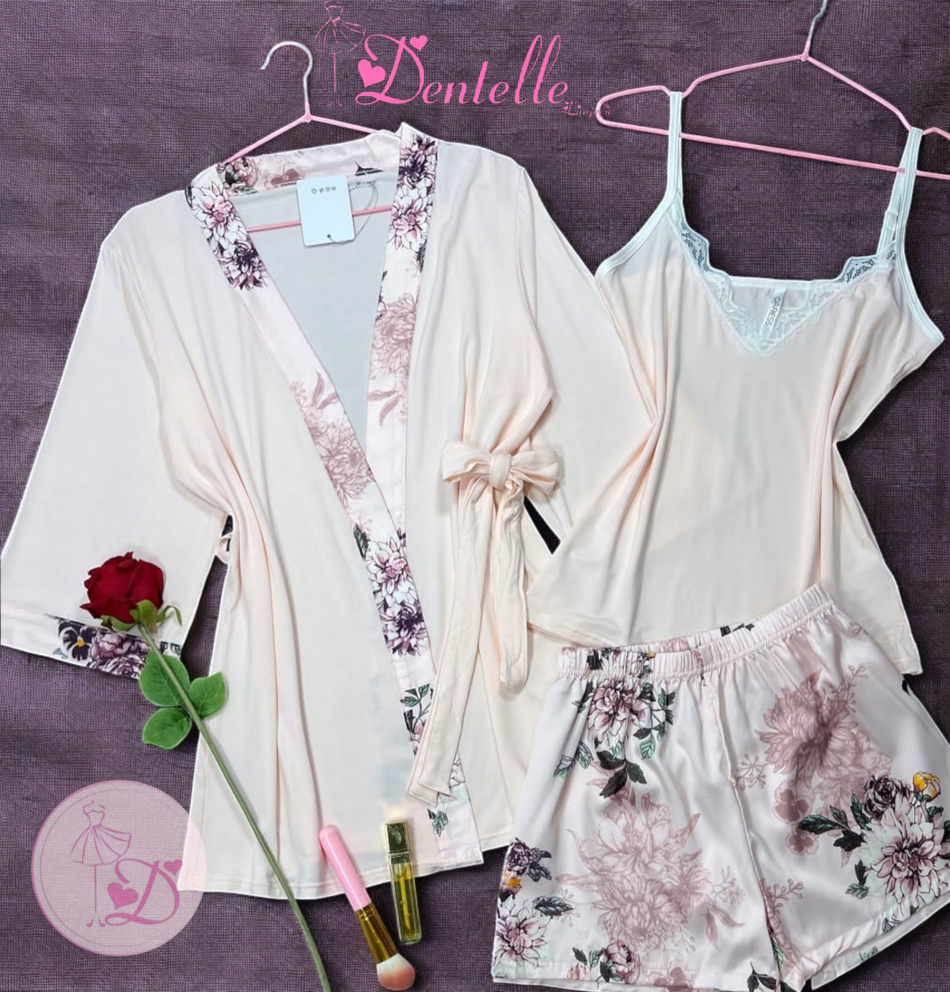 Offrez-vous un moment de douceur avec cet ensemble homewear 3 pièces au style romantique et féminin. Idéal pour se détendre avec élégance, il combine des matières agréables et des finitions raffinées.