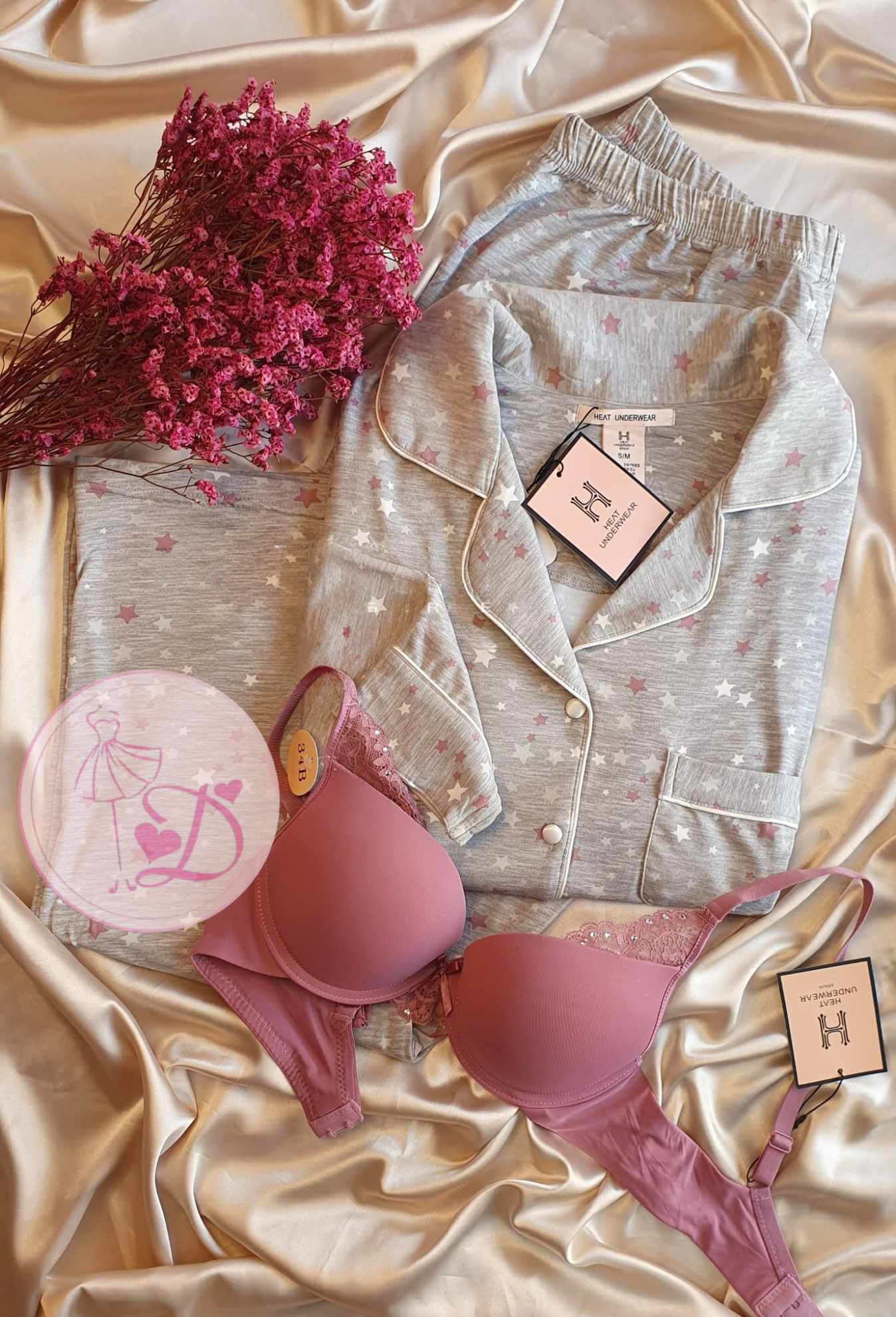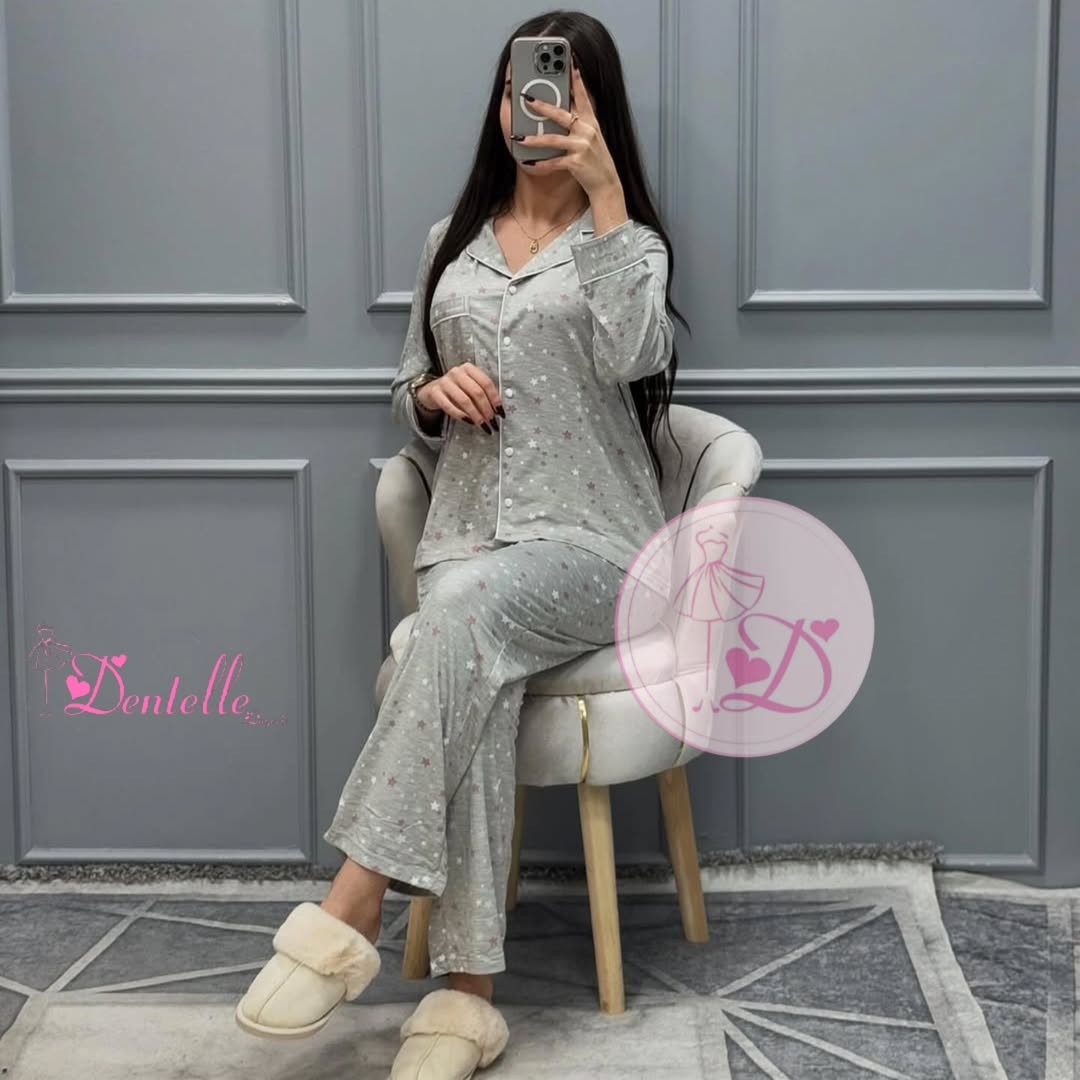 Apportez une touche de douceur et de magie à vos nuits avec ce pyjama gris orné de petites étoiles scintillantes. Créé par Heat Underwear Spain, il offre un confort exceptionnel grâce à son tissu doux et léger. Les finitions délicates et le design étoilé ajoutent une élégance discrète et intemporelle.