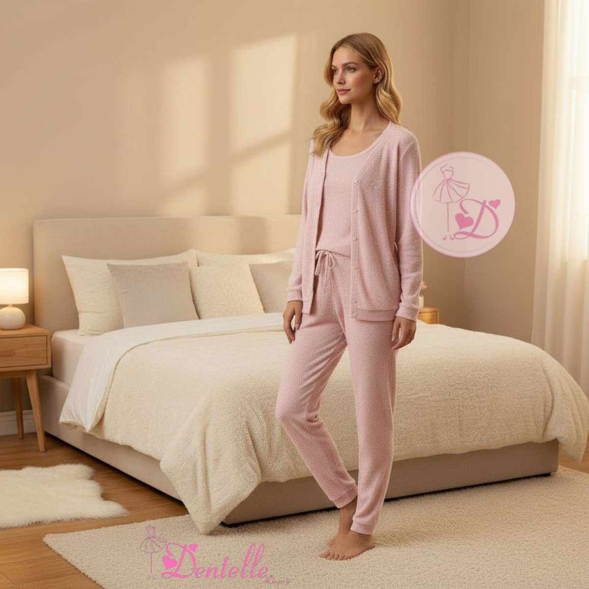 Optez pour l’élégance et le confort avec notre pyjama hiver 3 pièces Tress, marque espagnole reconnue. Ce modèle inclut :