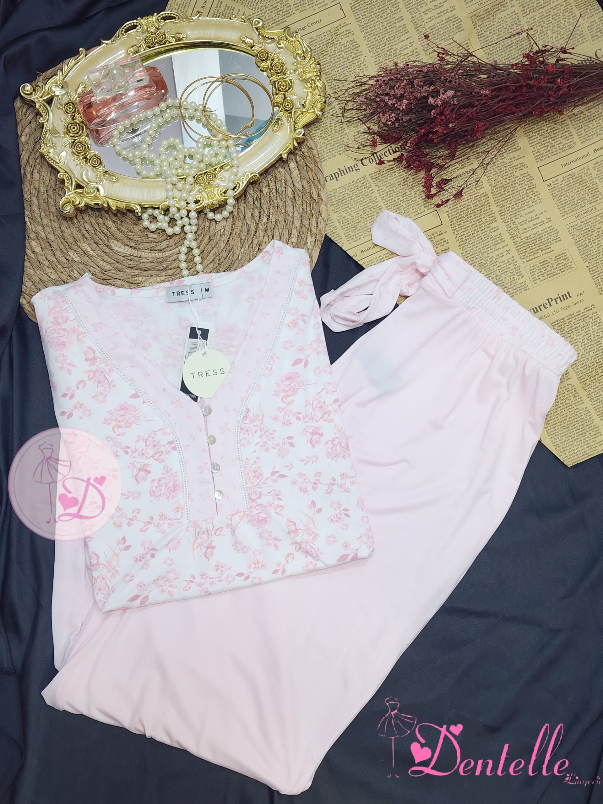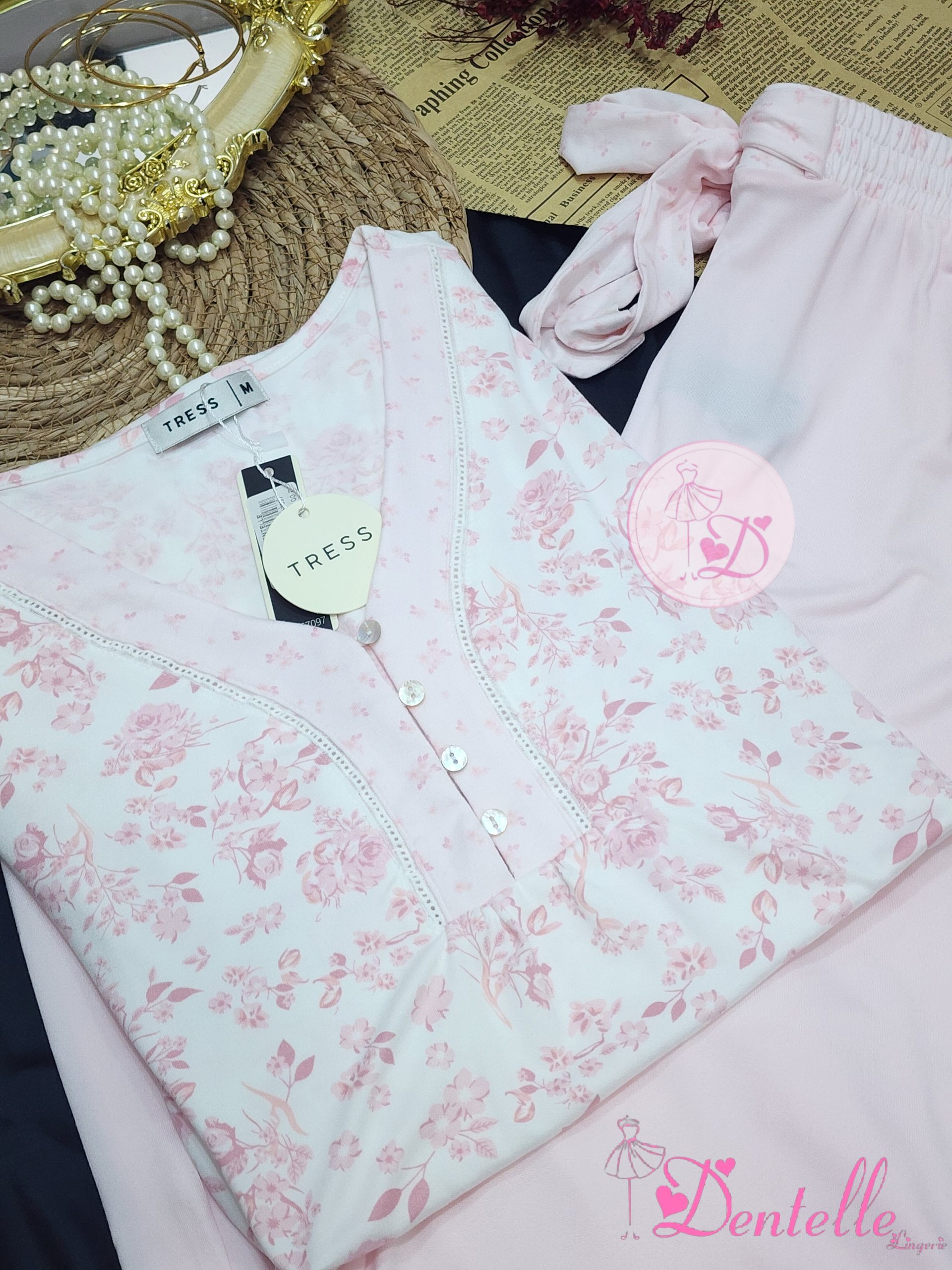🌸 Pyjama fleuri & uni – Fraîcheur et féminité 💕