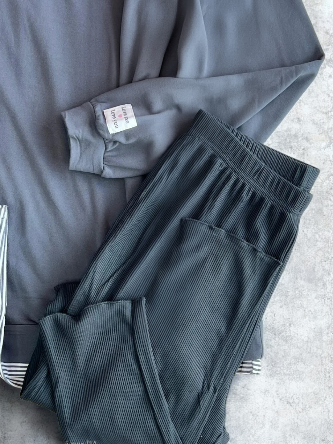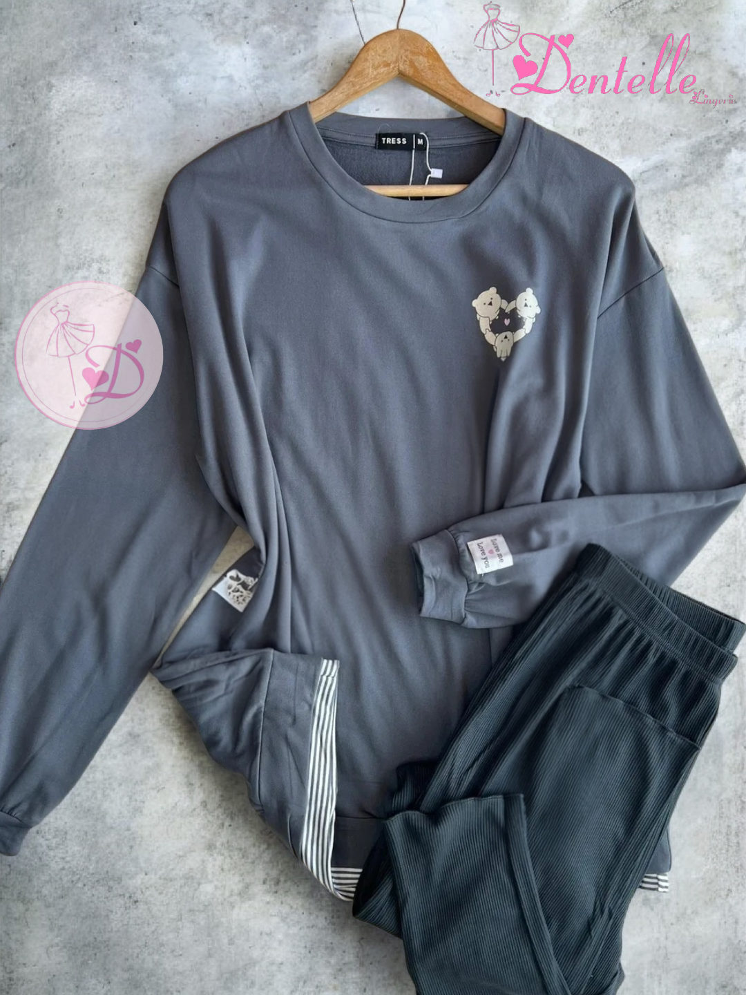 Disponible en rose et gris foncé, ce pyjama est parfait pour l’hiver et les moments cocooning à la maison.