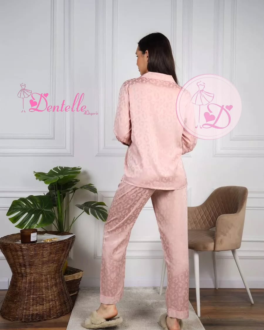 La chemise boutonnée apporte un style classique et intemporel, tandis que le pantalon fluide assure un confort optimal toute la nuit. Un ensemble parfait pour celles qui aiment rester élégantes même à la maison.