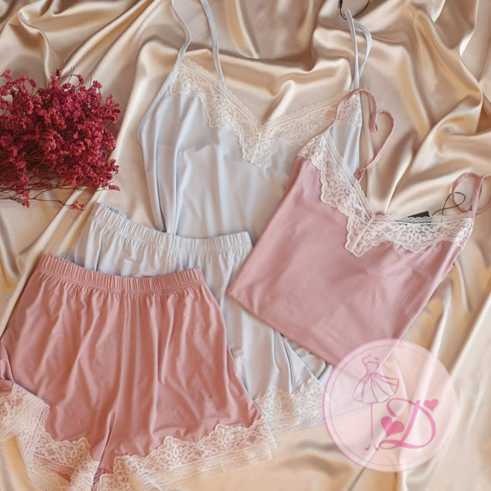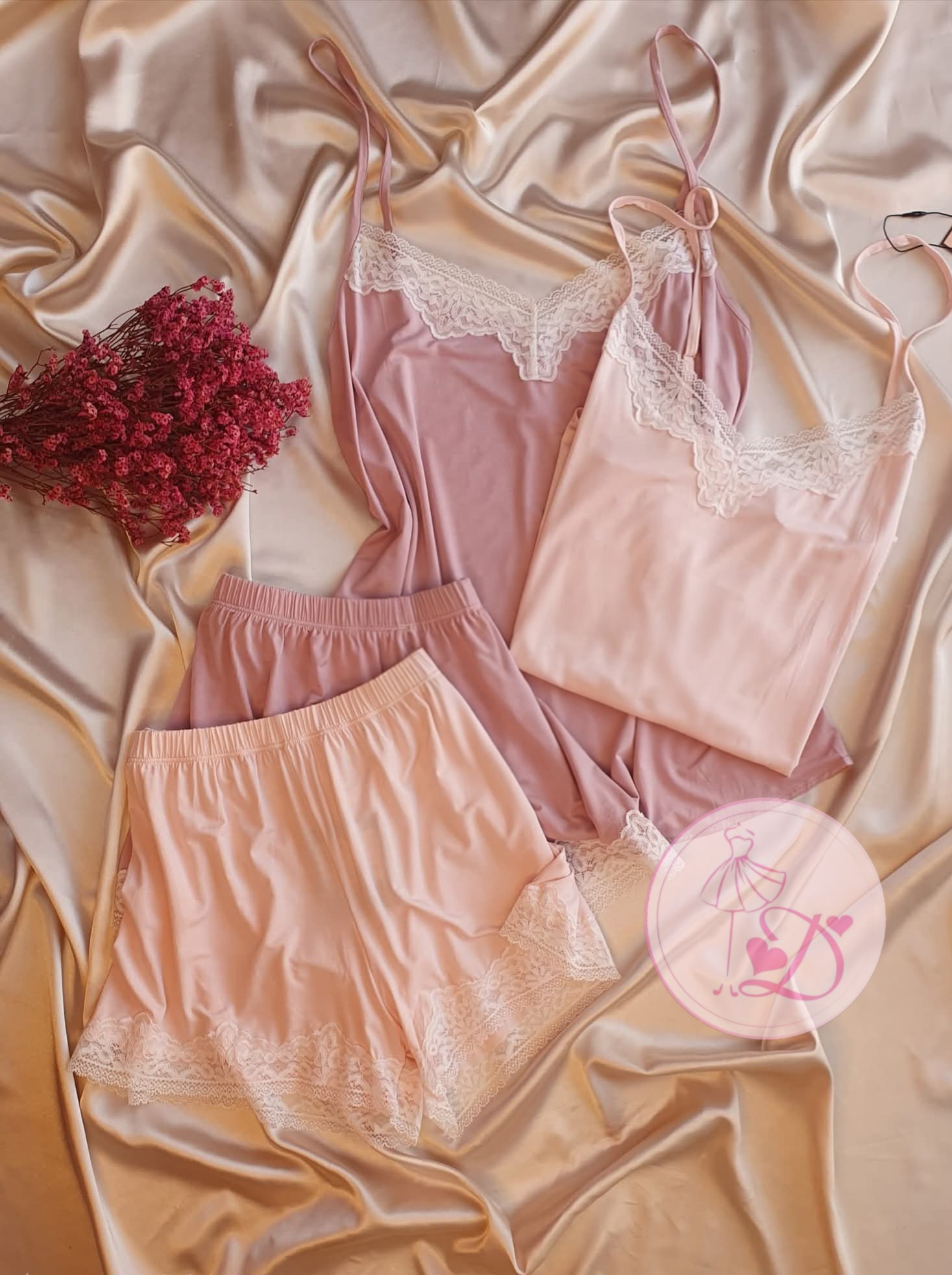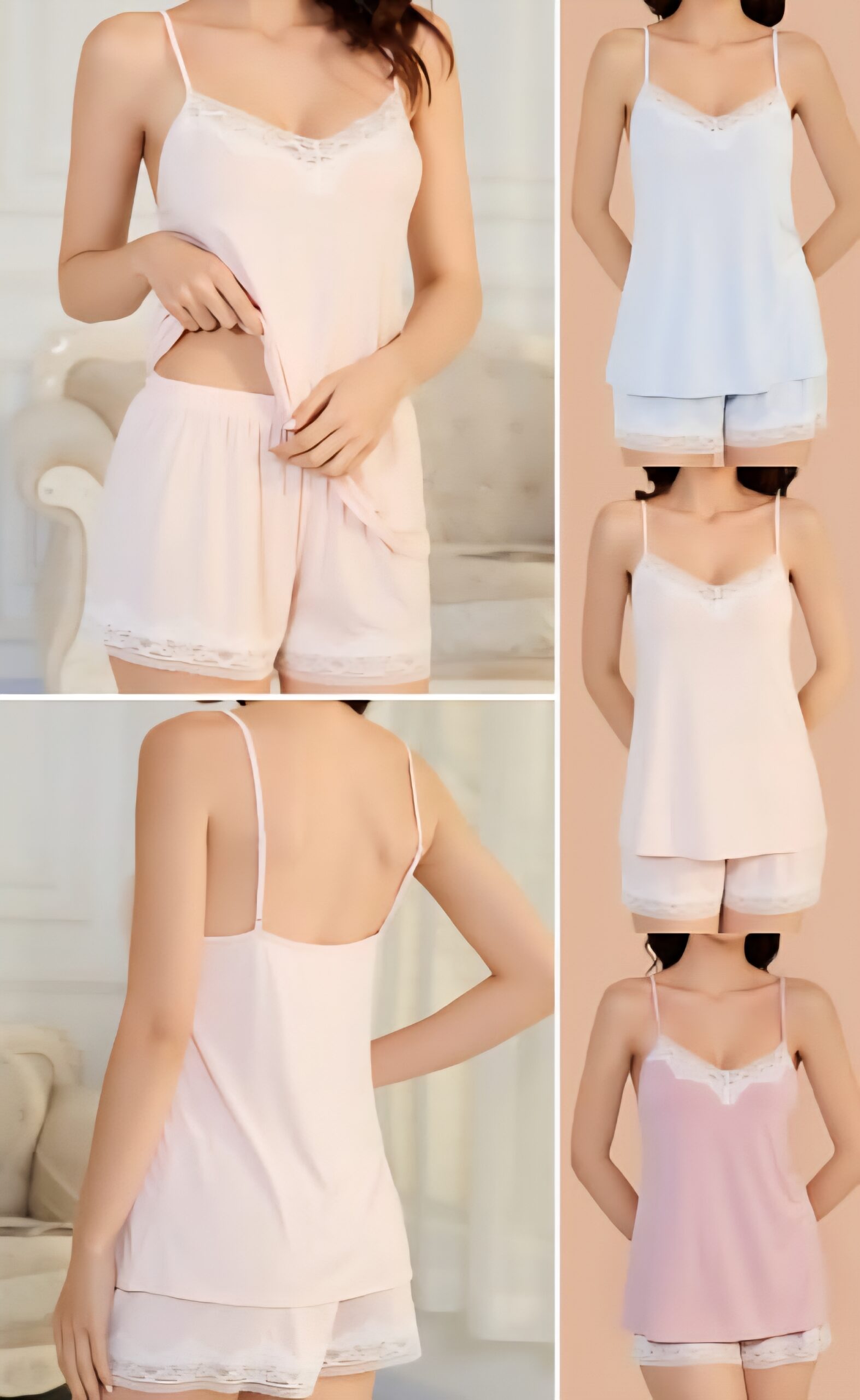 🩷 Pyjashort en coton et dentelle – Confort & douceur estivale