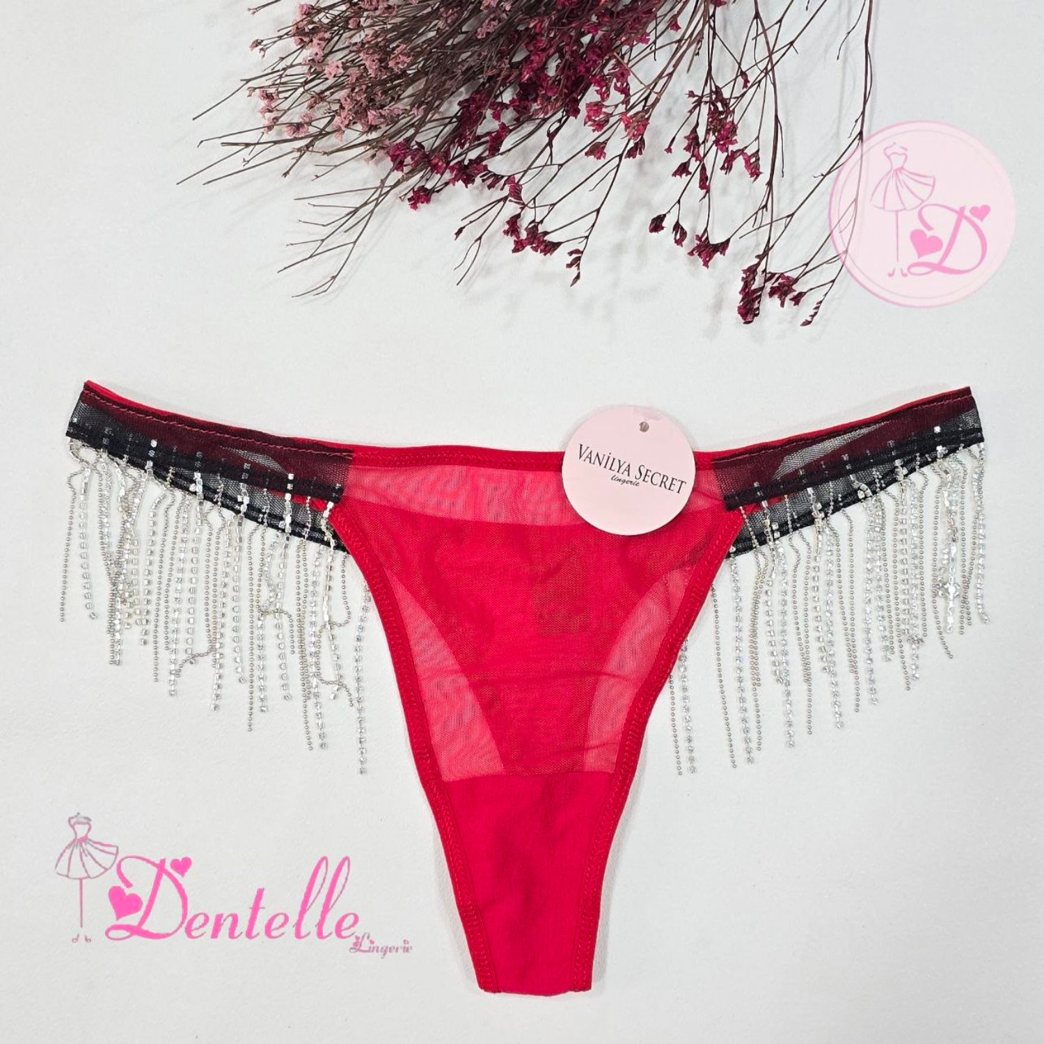 String rouge avec strass Vanilya Secret – élégance et éclat 💖