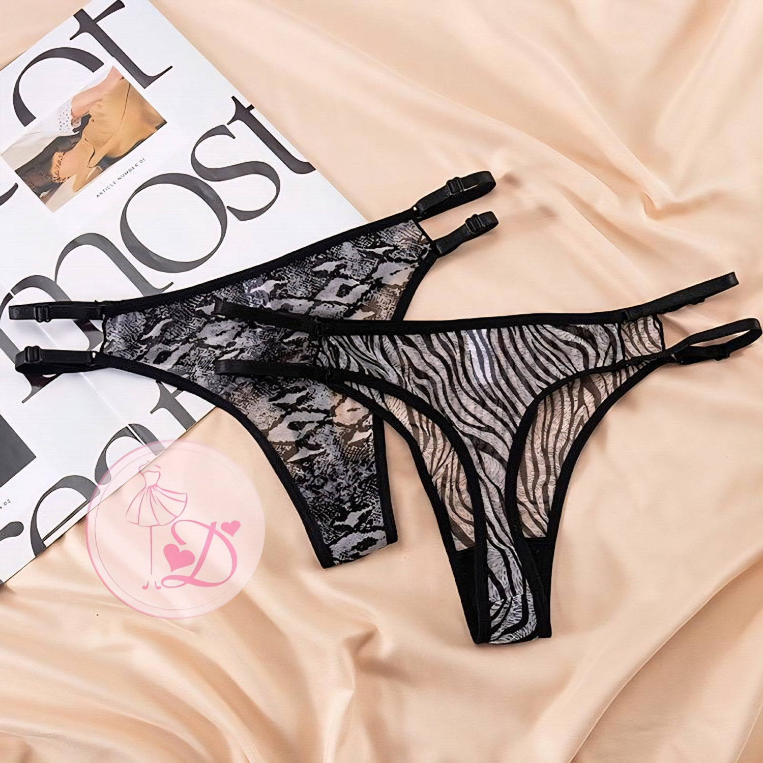 🌸 String en Tulle Motifs Léopard & Zèbre – Audace & Séduction